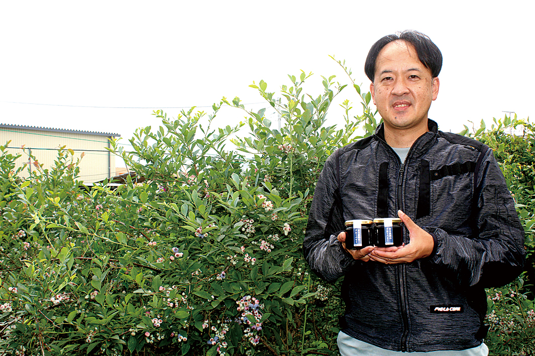 青木代表(45)が同農園を始めたのは10年ほど前。同地の気候に合った品種をと、数種類を試験的に栽培し、ティフブルーとホームベルの2種を見つけ出したことに始まる。現在は約250株を1500平方㍍の畑で栽培している。