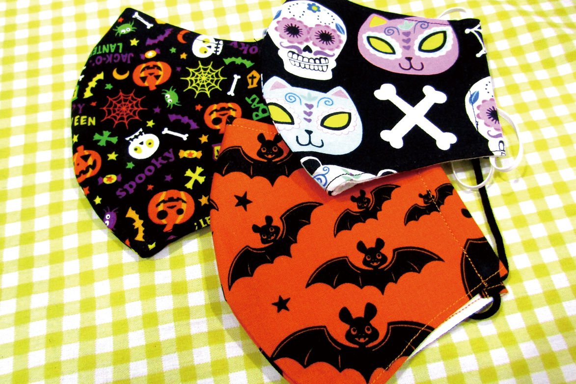 今年はアメリカの布で作った手作りマスクを販売し、着け心地がいいと好評。ハロウィーンマスクも人気だ。