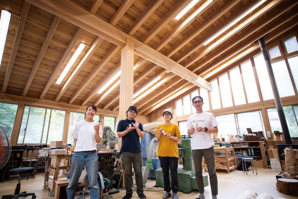 アロマオイルとミストは、同村で精油製造などを行う「ウッドボックス」に加工、製造を依頼。太めの枝を加工したオイルポッドは自社で生産する。