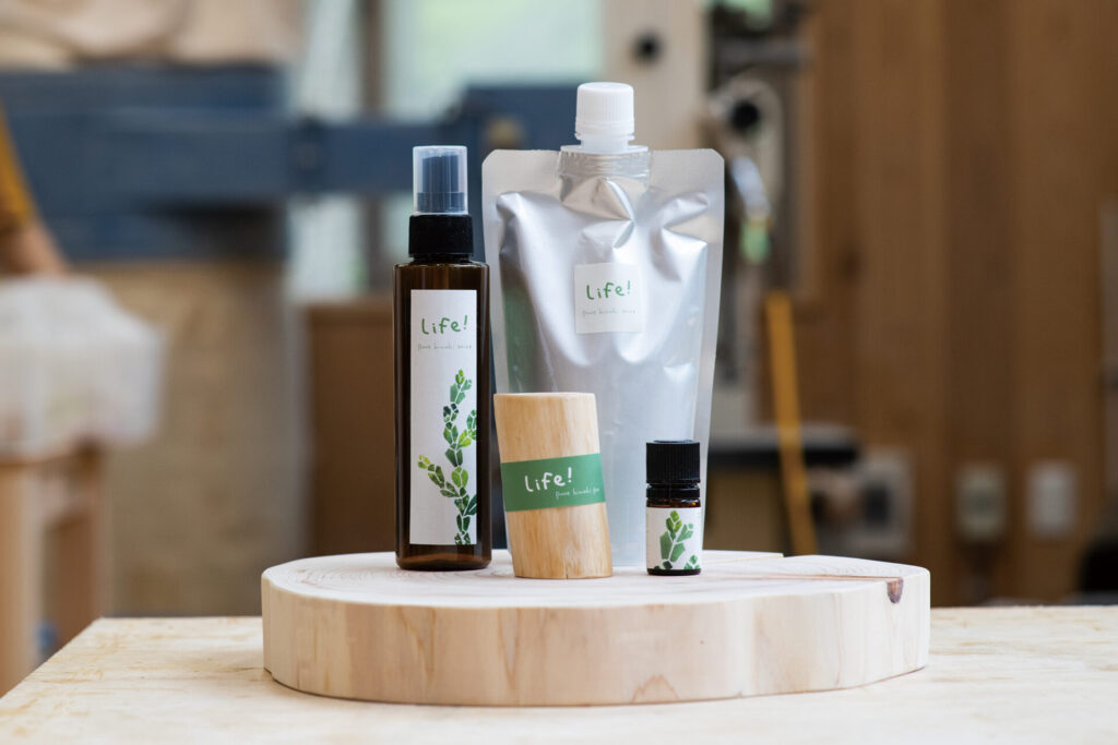 商品開発担当の飯塚潤子さんは「林業に携わる私たちが山で感じる生命力や息吹が『Life!』シリーズのコンセプト。嗅覚からその生命力を感じてもらいたいと思い商品企画した」と話す。