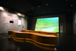 同施設は、ダム対岸に位置する監視所移設に伴い、新監視所の3階部分を活用した施設。同町の地形を5750分の1スケールにしたジオラマにプロジェクションマッピングを投影し、同局の電気事業や奥多摩の自然の魅力を紹介する「ジオラマシアター」を中心に、水力発電の仕組みを学ぶ展示や、白丸周辺の名所を紹介するコーナーなどがある。
