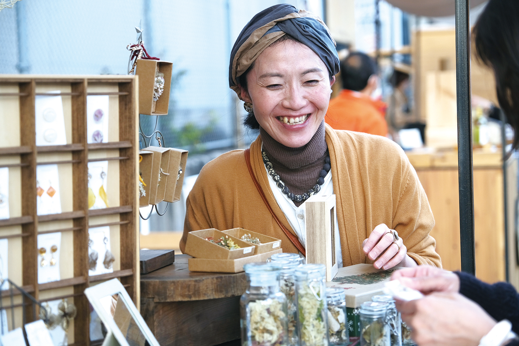 「作るのも楽しいけれど、売り場でお客さんが品選びをする様子を眺めるのも幸せな時間」といい、制作意欲を刺激する客との会話を何より楽しみにしている。