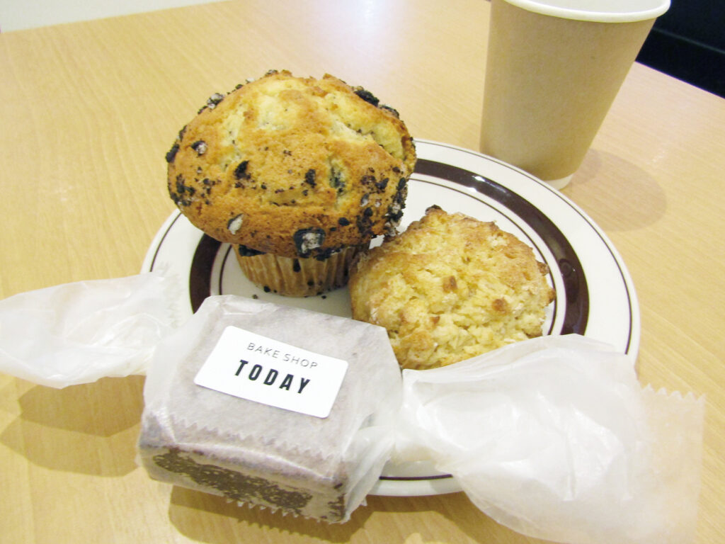 一番人気はマフィン。訪れた日はクッキークリームチーズとアップルシナモンクランベリーのマフィン(各350円)が並んでいた。