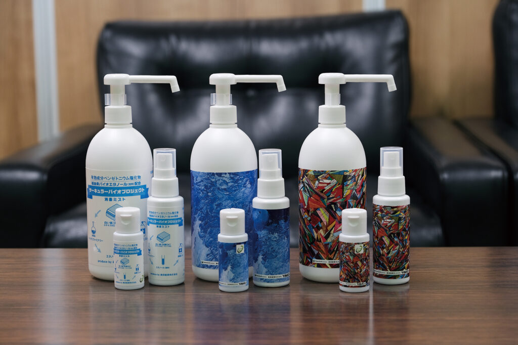 昨年9月に製造した消毒液は、同社が企業から回収した古紙をGEIに提供し、GEIが古紙を酵素で糖化させ、抽出したエタノールを使った。同社は今年、国の事業再構築補助金を活用してバイオエタノールの製造プラントを工場内に設置予定。小ロットでエタノールの生産が可能になる。今後は環境意識の高い企業向けに、企業内の古紙を使ったエタノール配合のノベルティの提案をしていきたいという。