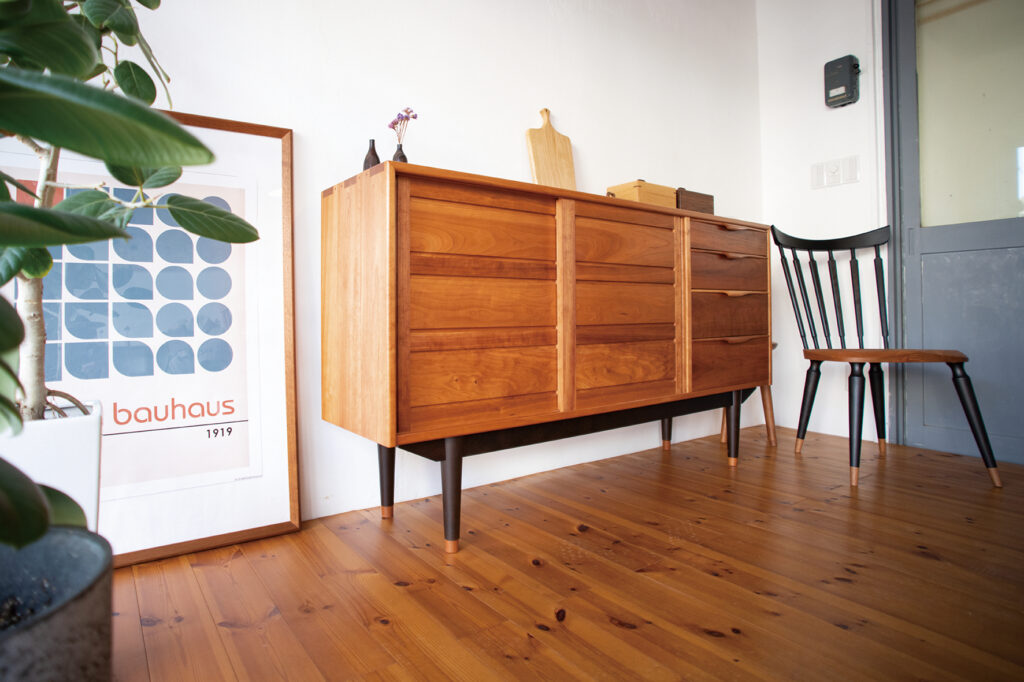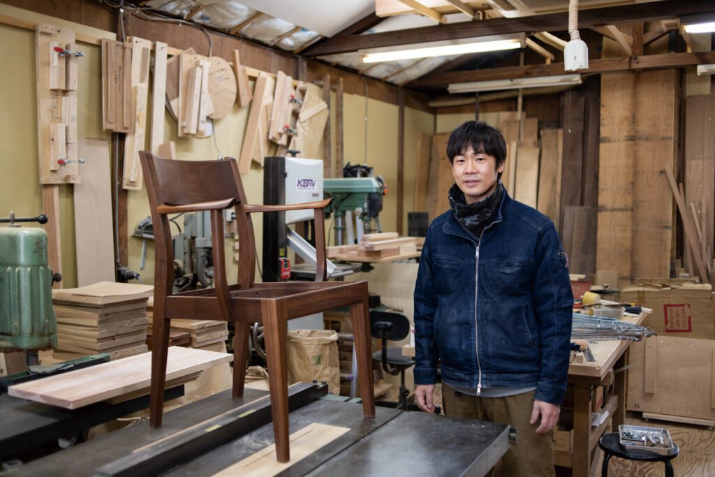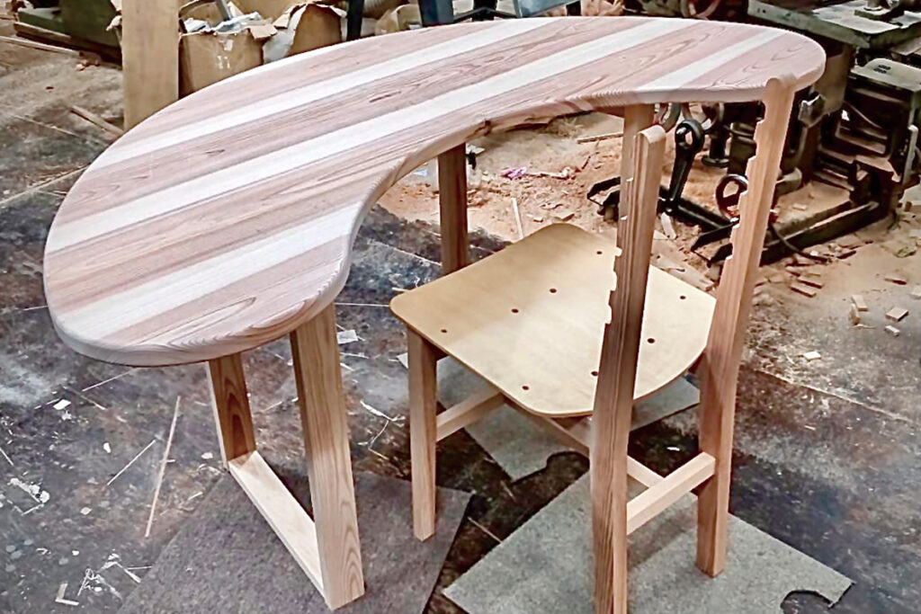 北欧家具に影響を受けたという森井さん(41)は「木工家具というと少し無骨なイメージを持つ人が多いと思う。なるべくスマートに見えるように、一つひとつの部材を丁寧に加工している」と話し、シンプルで機能性もあるが、細かいディティールにもこだわる。