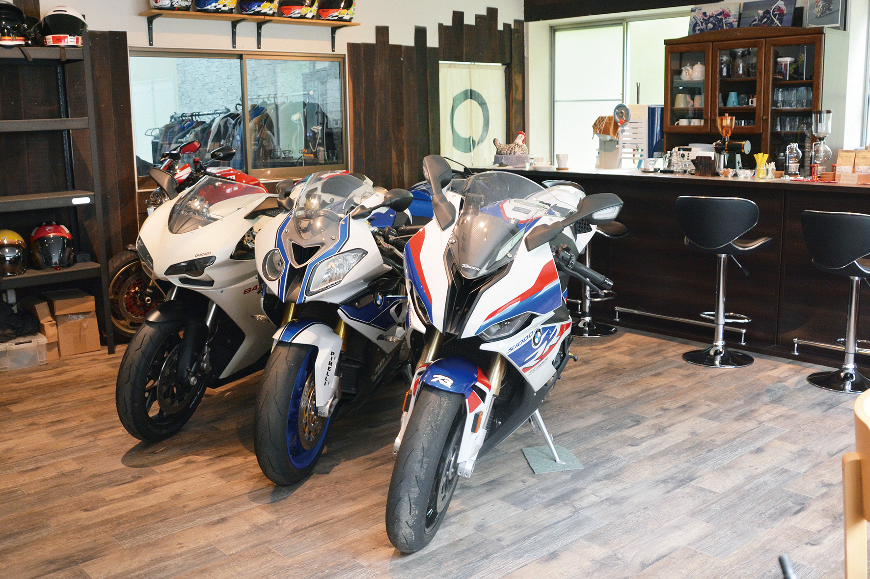 店奥の囲炉裏で、冬には魚を焼いて提供することも考えているという。「ツーリングや観光客、地元の寄り合いまで、誰もが気軽に立ち寄れるカフェにしたい。ついでに二輪、四輪の相談も受けます」と鈴木代表は話した。