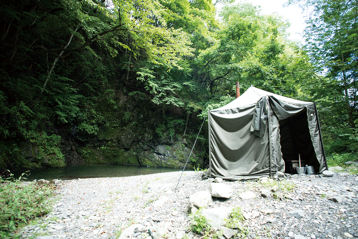 多摩川源流の小菅川に沿うようキャンプサイトがあり、森林も清流も楽しめる「ほうれん坊の森キャンプ場」で2年ほど前から働き始めた渡邉久司さん(30)と舩木良太さん(28)が、キャンプ場を盛り上げようと奮闘している。