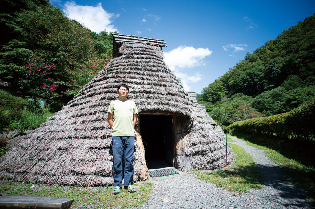 竪穴住居に泊まれる「原始村キャンプ場」に併設された「食事処ムッカ」は、小菅村産の鹿肉や地域の食材を使ったジビエ料理を提供している。店のおすすめは「ジビエバーグ定食」(1500円)。ハンバーグは鹿肉と猪肉の合い挽きで、彩り豊かな旬の野菜グリルが添えられる。野菜ナムルに温泉卵がのった「鹿肉ビビンバ」(1300円)も人気。