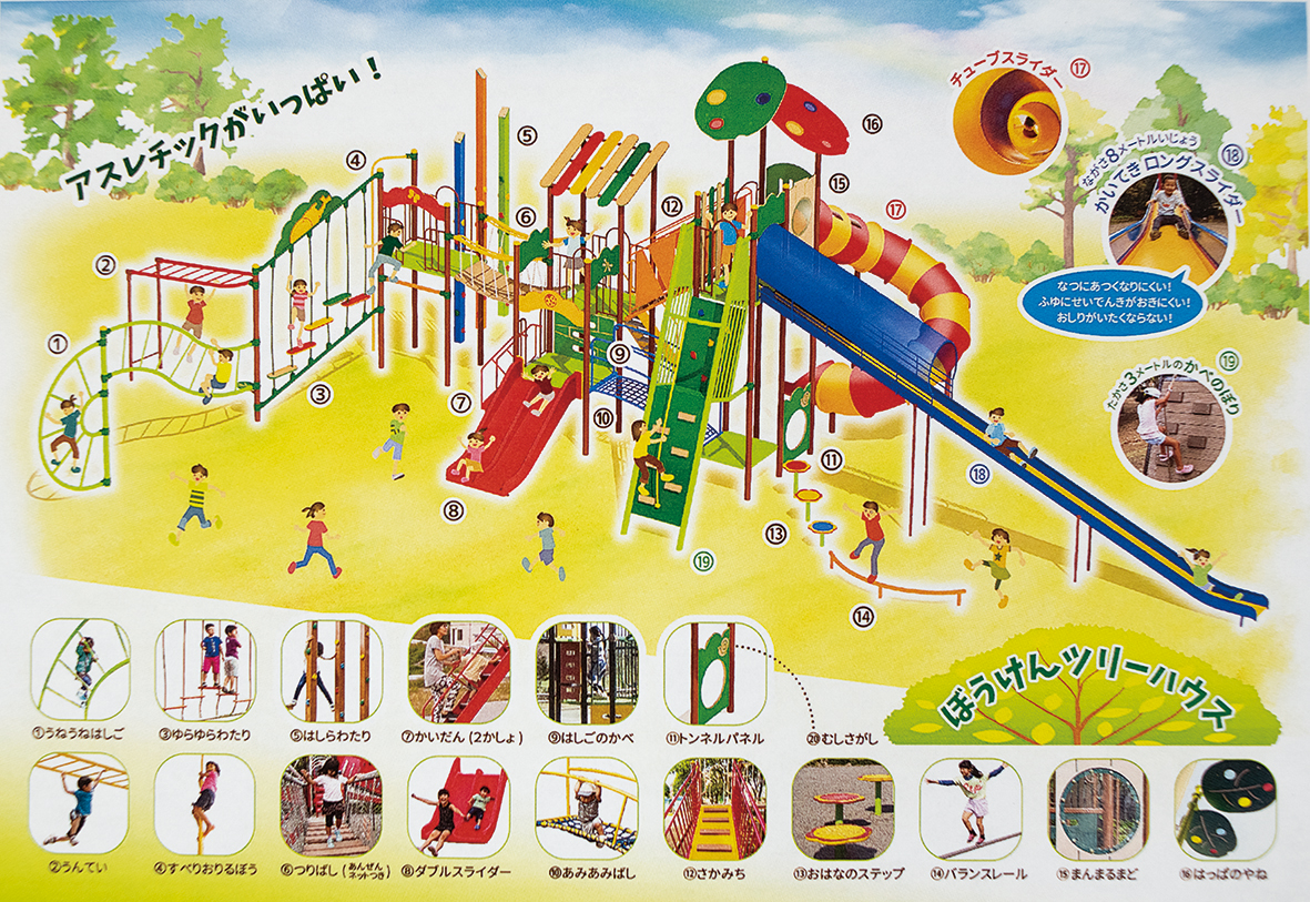 同社は数あるメーカーの中でも業界初の取り組みに挑戦し続けている。57年には地球儀型の回転式ジャングルジム「グローブジャングル」を開発。84年には「公園用健康器具」の販売を開始。90年代からはバリアフリーの発想を取り入れた遊具の開発に着手し、養護学校に「車椅子乗りぶらんこ」等の遊具を設置している。