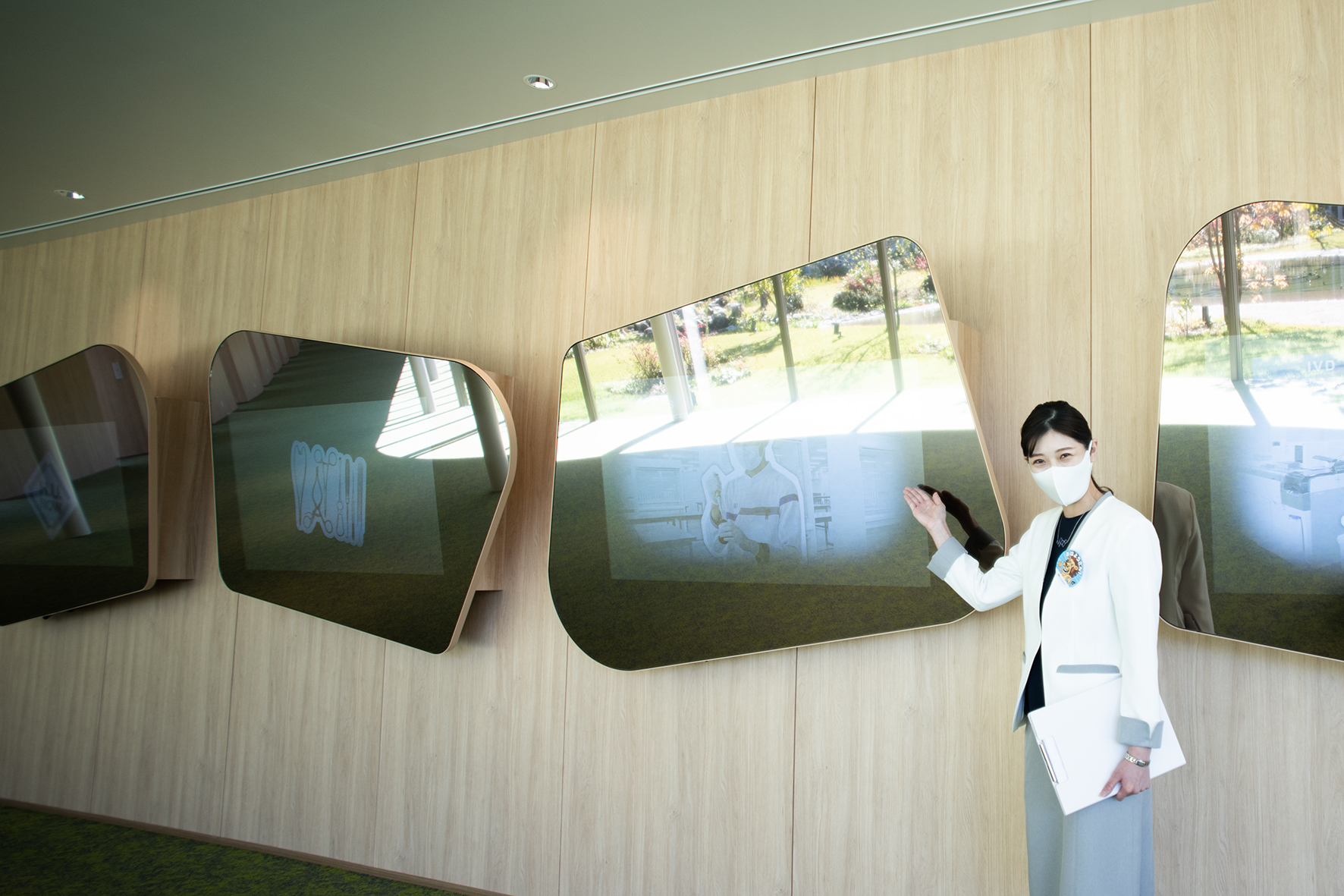 約12万2000平方㍍の敷地にある4つのCube(棟)を巡る施設見学は、来客者を迎えるエントランス管理棟「S(SOCIAL)- Cube」から始まる。施設見学には専属アテンダントが付き、H.U.グループが手掛ける幅広い事業領域について説明してくれる。