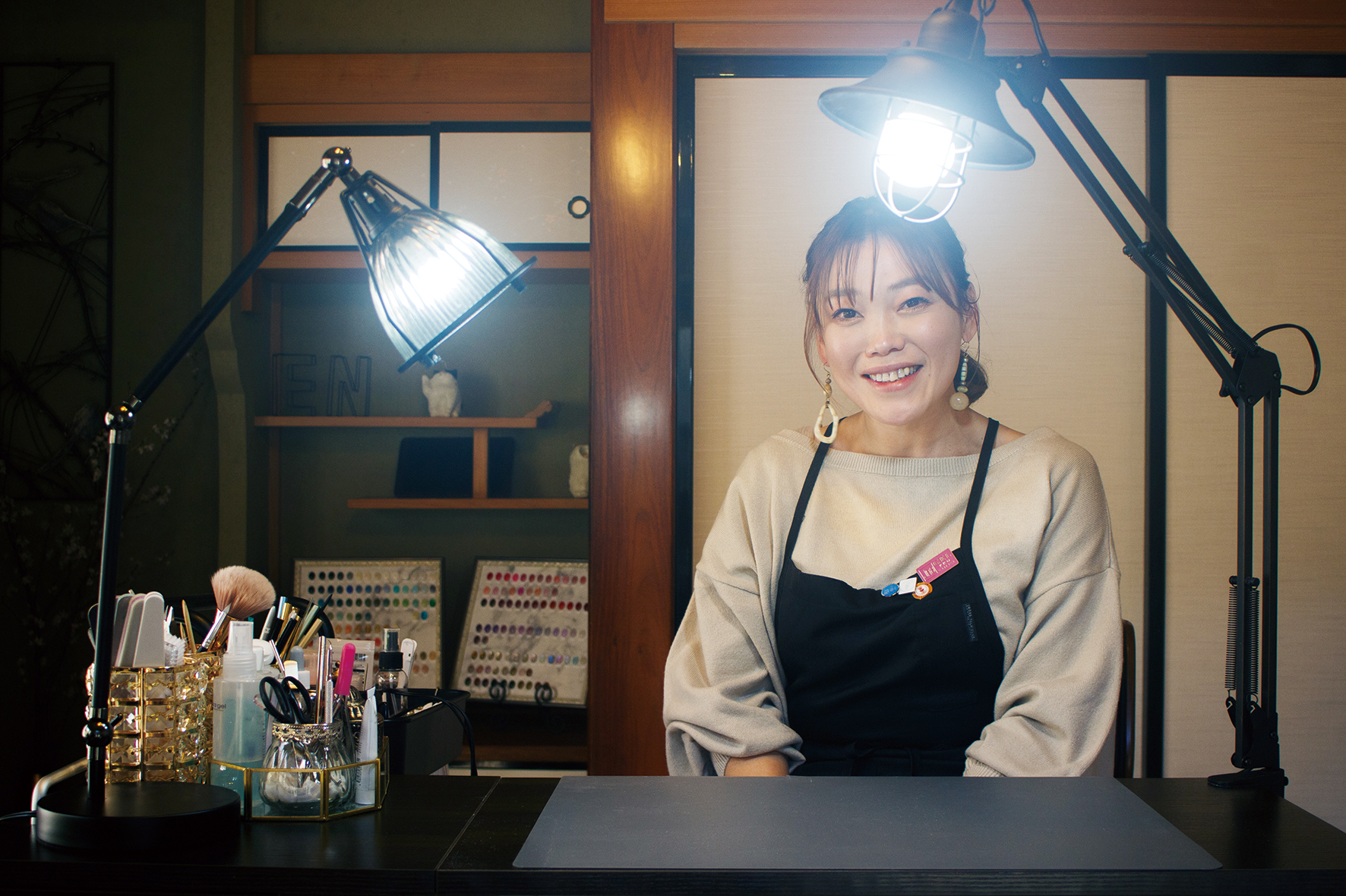 檜原村小沢地区にある、和風の落ち着いた雰囲気が特徴のネイルサロン「巻き爪・変形爪・フットケア private Nail salon en* 〜縁〜」。オーナーネイリストの峰岸摩姫さん(46)はトラブルフットケアマスターの資格を持ち、ネイルだけでなく、巻き爪・変形爪の補正やフットケアなどのサービスも提供する。
