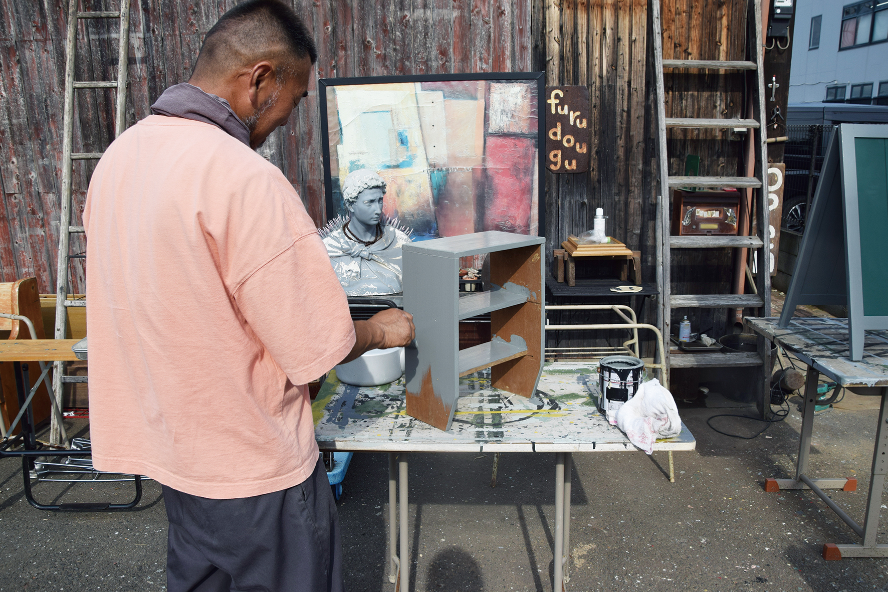 もともと古い物が好きで、前職は隣接するリサイクルショップで働いていた。直せば使えそうな道具や雑貨を見るうちに、自分で直して販売したいと、2009年に開業した。