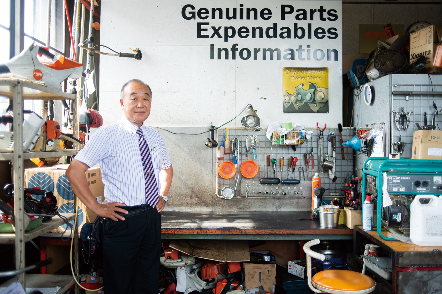 日本初のスチールショップとして30年以上の販売歴、ホンダ社製ロボット芝刈機の販売実績は国内有数。林業従事者や農家だけでなく、「庭の草を刈りたい」「薪を作りたい」といったアマチュアユーザーにも丁寧に対応してくれる。