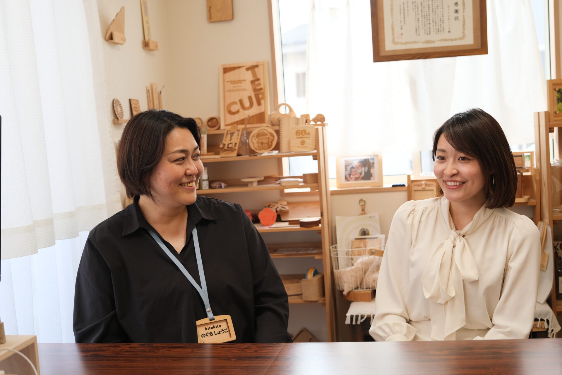 「営業といっても最初は何をしたらいいか全くわからず、でも、とにかく何か行動すれば何かが起こるかなと信じて、代表たちがやらないことをやりました」と可奈子さん。近隣の市役所を回って木製品の需要を聞いて歩くほか、展示会や勉強会に率先して参加し、出会った人たちに製品を売り込んだ。若く、エネルギッシュな可奈子さんが広告塔となり、kitokitoの製品に興味を持つ人や、受注につながる例が増えていった。