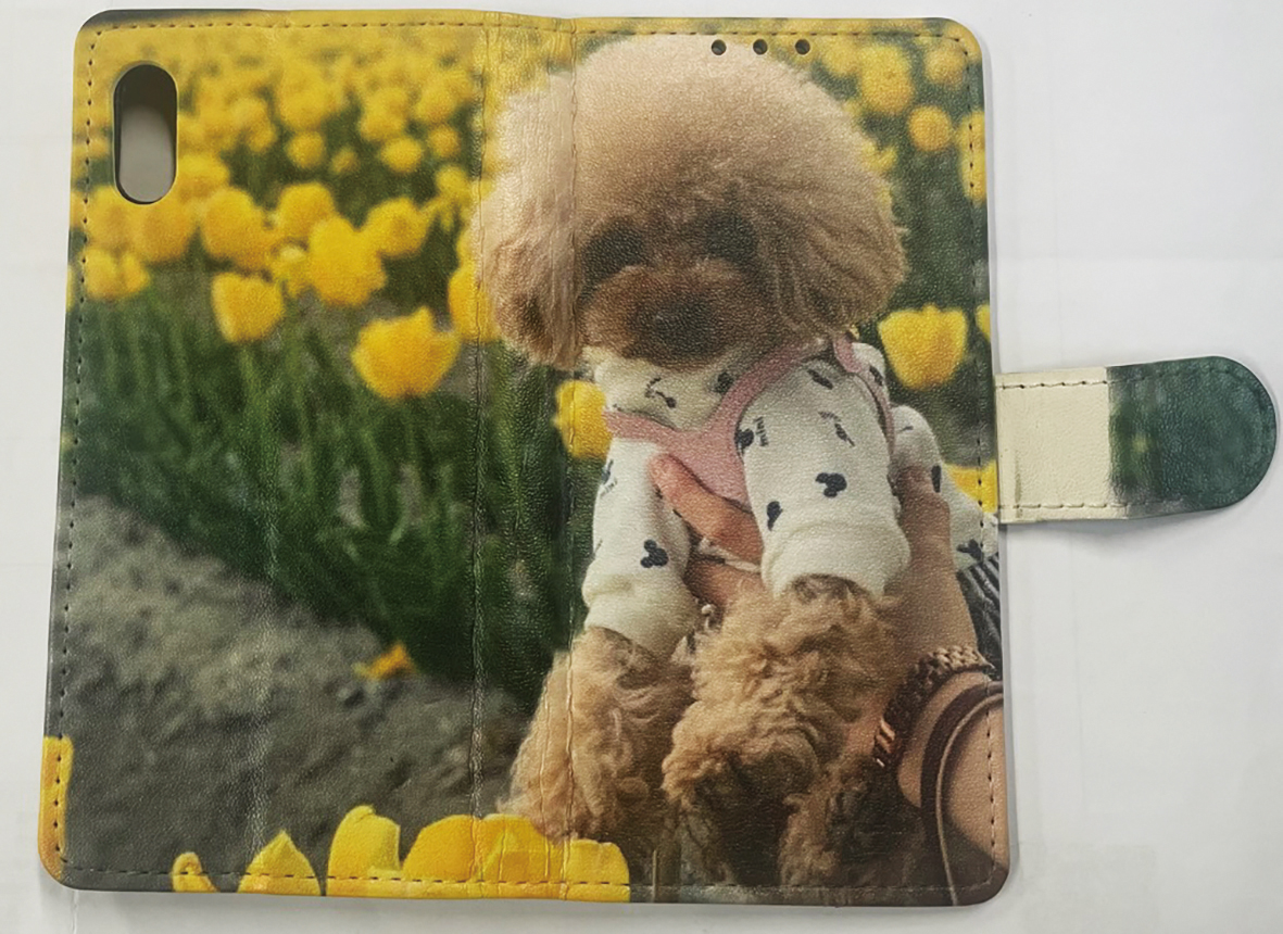 ペットや孫の写真などお気に入りの一枚をスマホケースに印刷し世界で一つだけのケースを作る。熟練スタッフが客から届いた写真を加工し最適にレイアウト。UVプリンターであっという間に鮮やかな印刷が完成する。シルク印刷のように版をとる必要がないため、手帳型のケースで2000円〜と印刷費が安価なのもうれしい。