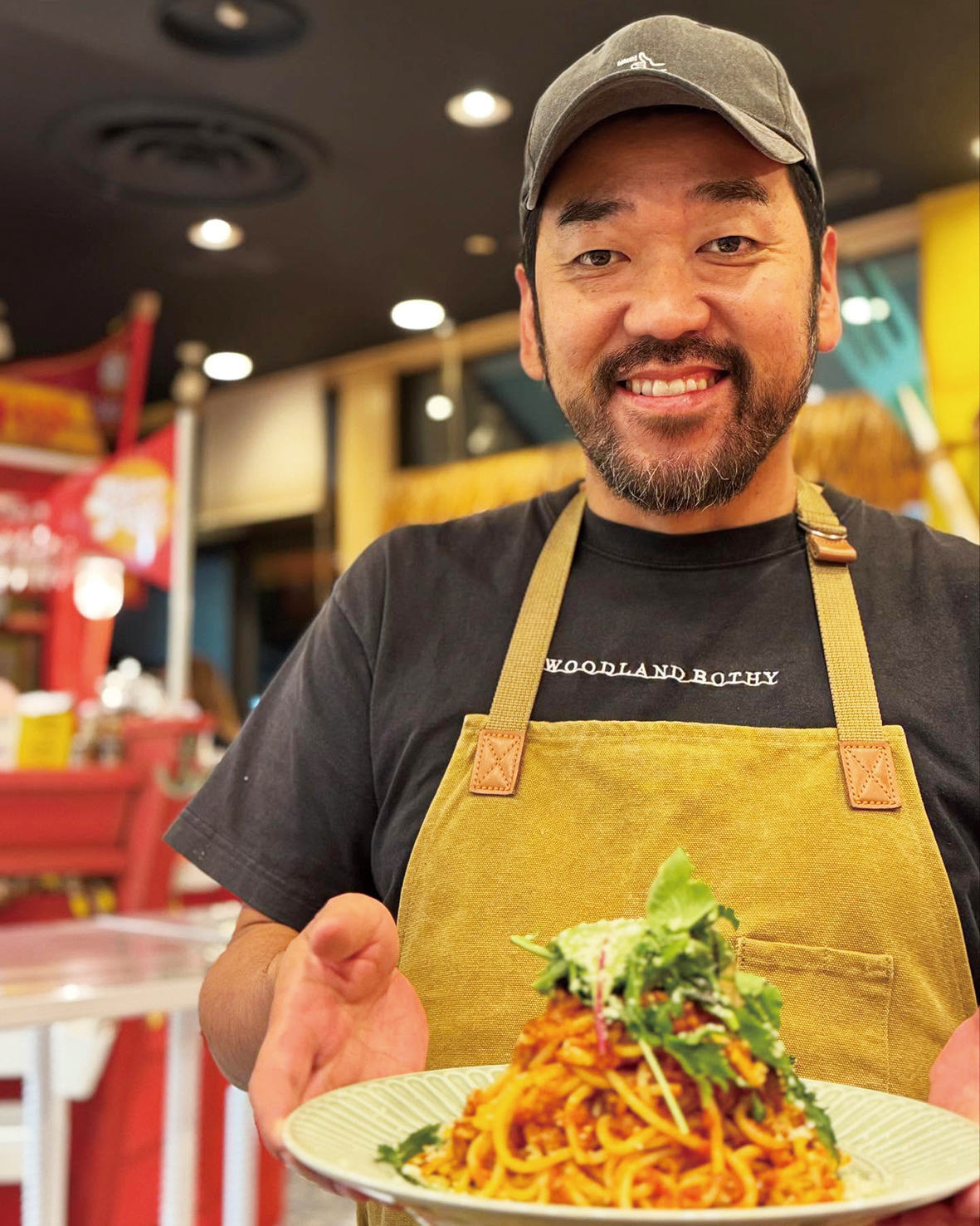 料理は毎日10種類ほどを提供。マッサマンカレー、グリーンカレーなどカレーは日替わりで3種類を用意。店自慢の牛スジを煮込んだ「どて煮」が好評という。パスタ類など一部はオーダー制で提供する。飲み物はアルコール各種とソフトドリンク。