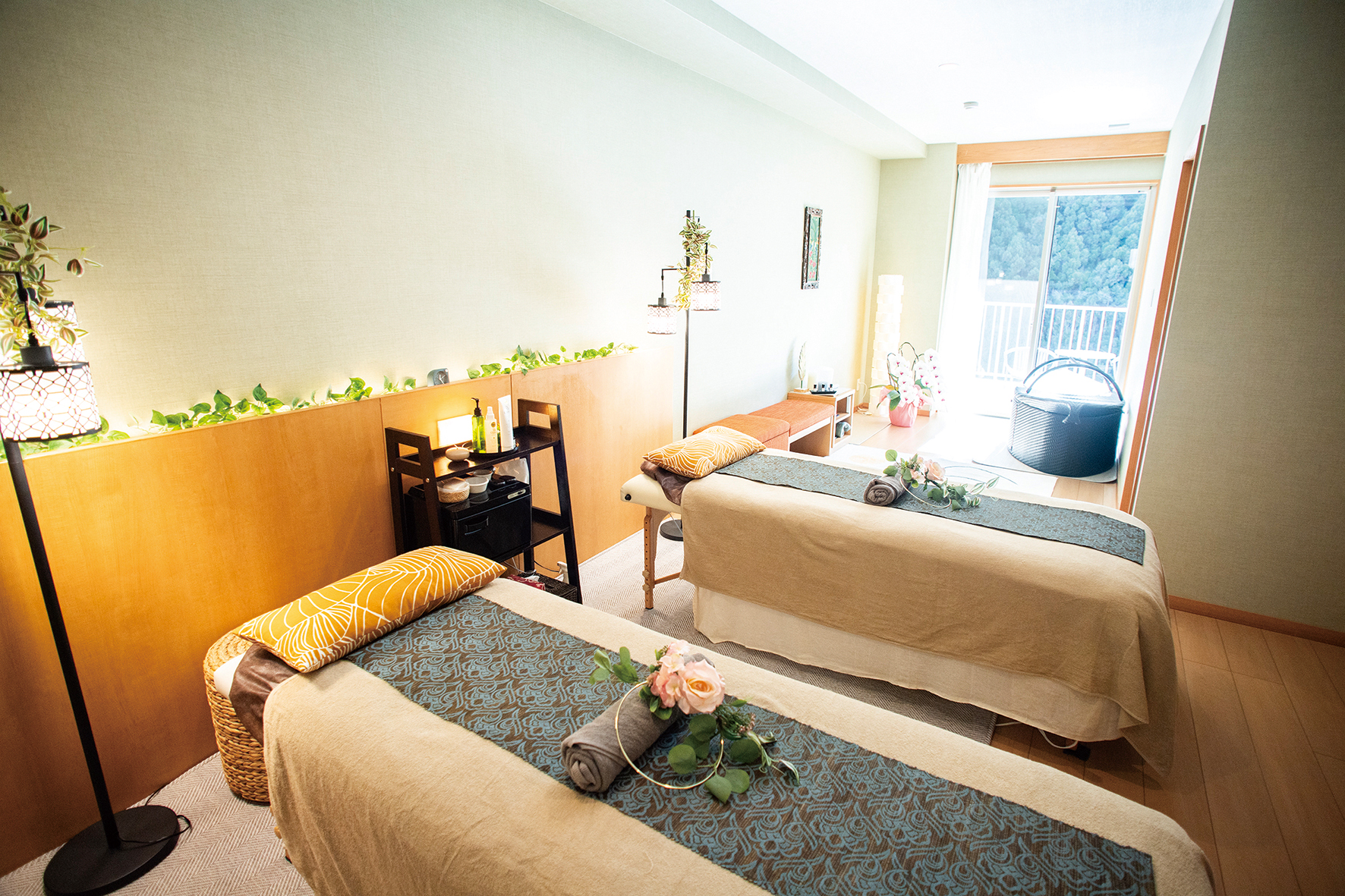 体の深い部分までしっかりほぐす丁寧なオイルトリートメント、薬草の蒸気で全身を温め、老廃物の排出や美肌効果、冷え症改善などの効果が期待できるスチームハーブなどを提供。川のせせらぎ、鳥のさえずりが聞こえる部屋でのスパは都会の喧騒を忘れさせ、心身ともに健康になれる。
