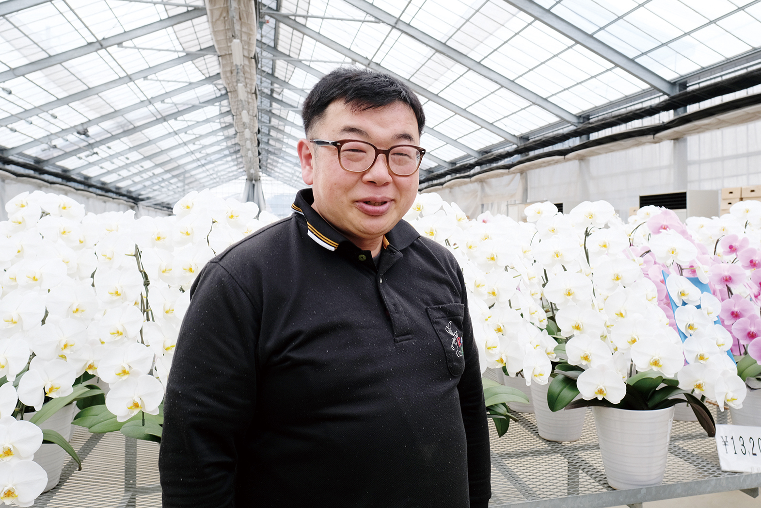 祖父以前は米や野菜、父は菊の鉢植え生産と、代々続く農家の長男。中学1年で父を亡くし、一度は途絶えた家業だったが、高校時代に「自分が継ぐ」と決意した。普通科を卒業後、園芸専門学校在学中にホームセンターで目にした胡蝶蘭の美しさと収益性の高さに惹かれ、栽培の道に進んだ。