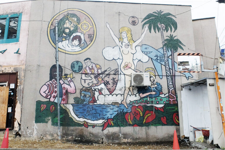 福生駅東口 リリー・フランキーさんの壁画の全容 再開発で見えた